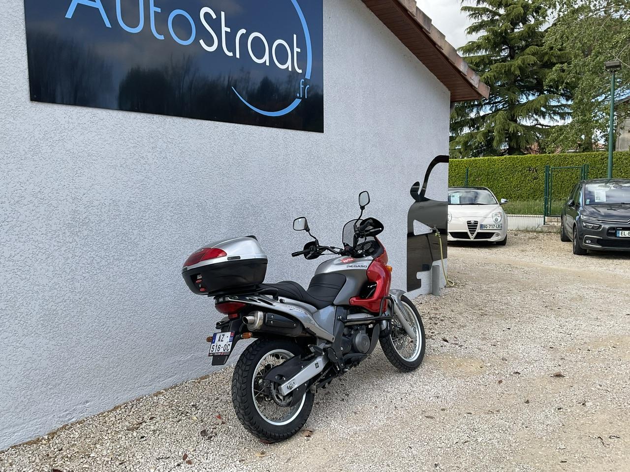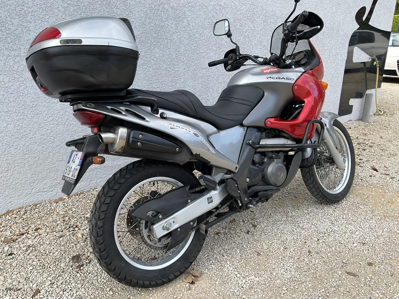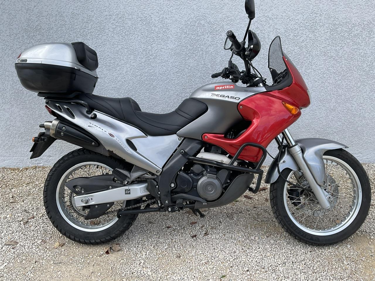 L'Aprilia Pegaso 650 de 2003 est une moto polyvalente et fiable, dotée d'un moteur monocylindre puissant de 652 cm³. Avec ses 48 chevaux, elle offre une conduite dynamique sur route et des performances solides en tout-terrain. Sa transmission à six vitesses assure des changements fluides, tandis que ses suspensions avant et arrière absorbent efficacement les chocs pour une conduite confortable. Équipée de freins à disque à l'avant et à l'arrière, elle garantit une sécurité optimale. Son poids léger de 175 kg la rend maniable et facile à contrôler, que ce soit en ville ou en hors-piste. Son design audacieux et élégant attire les regards, renforçant son attrait. En termes de rapport qualité-prix, elle offre des performances et une fiabilité dignes de motos bien plus coûteuses. En somme, la Pegaso 650 est une moto qui combine habilement polyvalence, fiabilité et plaisir de conduite, faisant d'elle un choix idéal pour les motards à la recherche d'aventures variées.