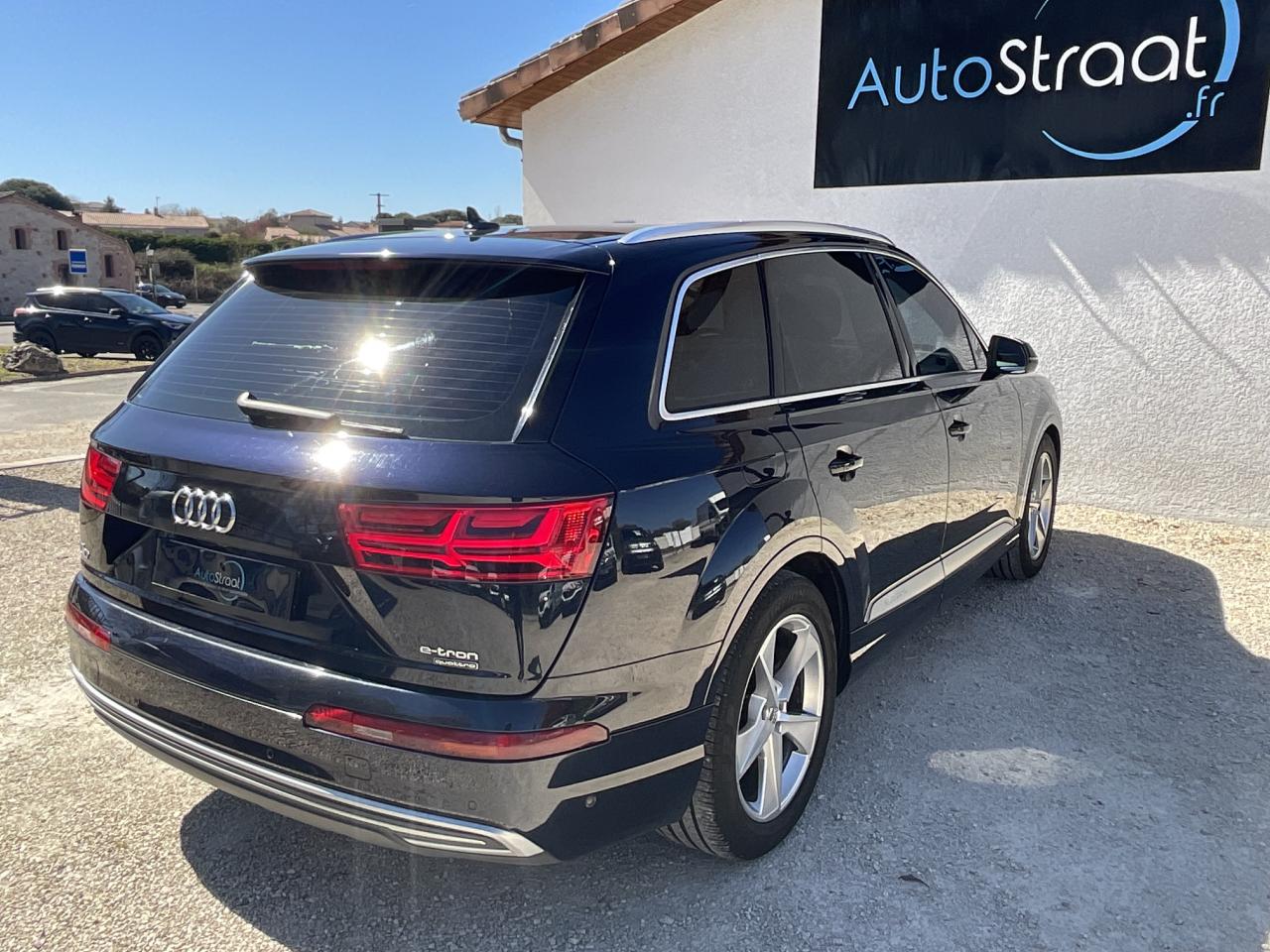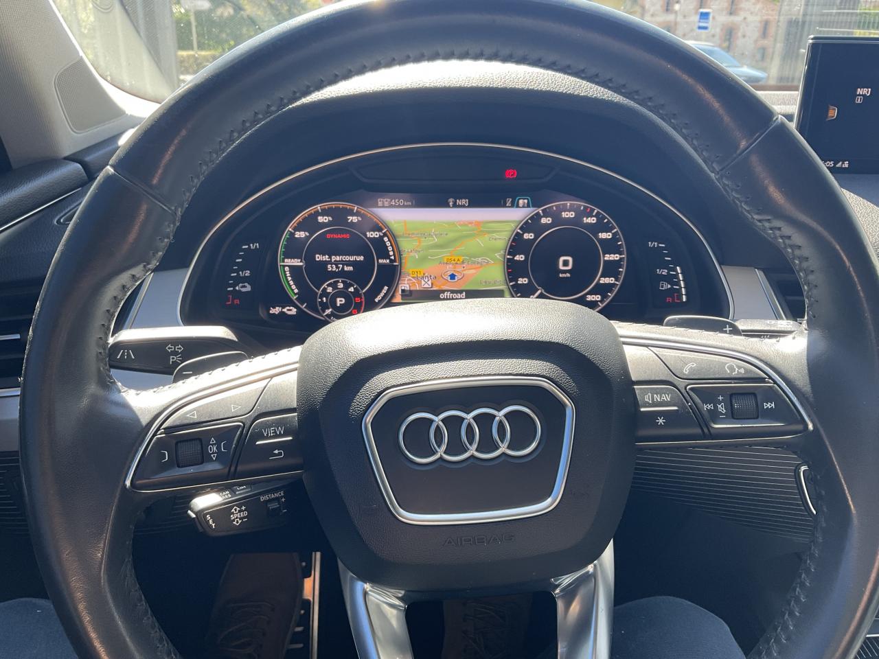 Accoudoir central avant ConfortAdaptive Air SuspensionAFFICHAGE TETE HAUTEAirbag passager désactivableAirbags grand volume pour conducteur et passager avantAirbags latéraux (thorax et bassin) pour le conducteur et le passager avant avec airbags de tête intégrésApplications décoratives Supérieures en Aluminium brossé sono / Applications décoratives inférieures Aluminium / Beaufort noirAppuie-tête intégraux à l'avant et à l'arrièreASR (Système Anti-patinage)Assistant de changement de voie de circulation via affichage par LED dans le rétroviseur extérieur correspondantAssistant de feux de routeASSISTANT VISION NOCTURNEAudi connect "Sécurité et Service"Audi connect avec une carte SIM de données intégréeAudi drive select : réglage des caractéristiques individuelles du véhicule selon les modes disponibles : auto, confort, dynamic, efficiency et individualAudi Hold AssistAudi Music InterfaceAudi Phone BoxAudi pre sense cityAudi smartphone interfaceAudi Tracking SystemAudi virtual cockpitAugmentation de la capacité du réservoir d'AdBlue à 24 litresBecquet de toit avec 3e feu stopBoîte automatique tiptronic à 8 vitesses avec moteur électrique intégréBose sound system avec son 3D : 19 haut-parleurs 558 wattsCâble de chargement 11kW pour les bornes de recharge publiquesCiel de pavillon en tissu noirClé confort avec Keyless Go (démarrage et arrêt moteur) & Entry (accès au véhicule sans clé) avec déverrouillage du coffre commandé par capteur y compris cache-bagages électriqueClimatisation 3 zones (2 à l'avant et 1 à l'arrière) avec écran TFTClimatisation Automatique (avant ou arrière)Coffre avec plancher de chargement réversible et couvre-bagagesContrôle de la pression des pneus avec signaux acoustique et visuel de perte de pressionCrochet d'attelage et dispositif de stabilisation de l'attelageDétecteur de pluie et de luminositéDirection électromécanique à assistance variableDossier de banquette arrière rabattable asymétriquement selon un rapport 35 /30 /35Eclairage d'ambiance à LEDEcrous antivol pour les rouesESC : contrôle électronique de stabilisation. Relie ABS, EBV, ASR et EDSFermeture centralisée des portesFeux arrière à technologie LED sauf feux de reculFilet de séparation ARFixation ISOFIX sur siège passager avantFixations ISOFIX Top Tether pour les places latérales arrièreFrein de stationnement électromécanique avec fonction Hold Assist, désactivation automatique au démarrage et fonction frein de secours sur les quatre roues durant la marcheFreins à disques ventilés à l'avant et à l'arrièreHayon de coffre à ouverture et fermeture électriquesIdentification du modèle/technologie : inscriptions e-tron à l'extérieur sur la calandre singleframe, le hayon, les ailes avant et les moulures de seuilInterface BluetoothJantes AluminiumJantes en alliage léger style 5 branches 9 J x 20" Pneus : 285/45 R 20Kit anti-crevaisonKit de réparation de pneusKit mains libres BluetoothLave-pharesNavigateur GPSNavigation MMI plus avec MMI touchOrdinateur de bordPack Assistance CityPack Assistance RoutePack Assistance StationnementPack brillancePack Cuir pour partie inférieurePare-brise, vitres latérales et lunette arrière en verre athermiquePare-chocs arrière spécifique e-tronPare-chocs avant spécifique e-tronPeinture intégrale uniePeinture métalliséePeinture verniePhares Audi Matrix LEDPhares avant Full LEDPommeau de levier de vitesse en cuir perforéPrise de charge électrique sur l'aile arrière gauche du véhiculePrise USB, prise iPodQuattro: transmission intégrale permanente avec répartition asymétrique et dynamique de coupleRéglage électrique de la colonne de direction et du volantRétroviseur intérieur jour/nuit automatiqueRétroviseurs électriquesRétroviseurs extérieurs asphériquesRétroviseurs extérieurs avec clignotants à LED intégrés, avec fonction jour/nuit automatique des deux côtés et mémoireRétroviseurs extérieurs dégivrants et rabattables électriquementRétroviseurs rabattables électriquementRadar de reculRadio + Lecteur CDRampes de pavillon chroméesSellerie cuir CricketSELLERIE CUIR VALCONASièges avant chauffantsSièges avant réglables électriquement avec fonction mémoire pour les sièges conducteur et passager. Comprend support lombaire à réglage électrique 4 voiesSignature optique à LED dans le bouclier avant spécifiqueSystème antiblocage ABS avec répartiteur électronique de freinage EBVSystème de recharge e-tron : ce système comprend, en plus du câble du véhicule et de l'unité de commande, 2 câbles de branchement interchangeablesSystème Start & Stop et récupération d'énergie au freinageSYSTEME DE LECTURE DES PANNEAUX DE SIGNALISATION PAR CAMERATapis de sol avant et arrièreToit panoramique en verre électriqueTouche EV permet de choisir parmi les différents modes : EV (ou tout électrique)Vitres électriques (avant ou arrière)Vitres arrière surteintéesVitres arrières surteintées (vitrage privacy)Volant multifonction 4 branches en cuir avec palettes de changement de vitesseVolant Sport 3 branches gainé cuir, réglable en hauteur et en profondeur