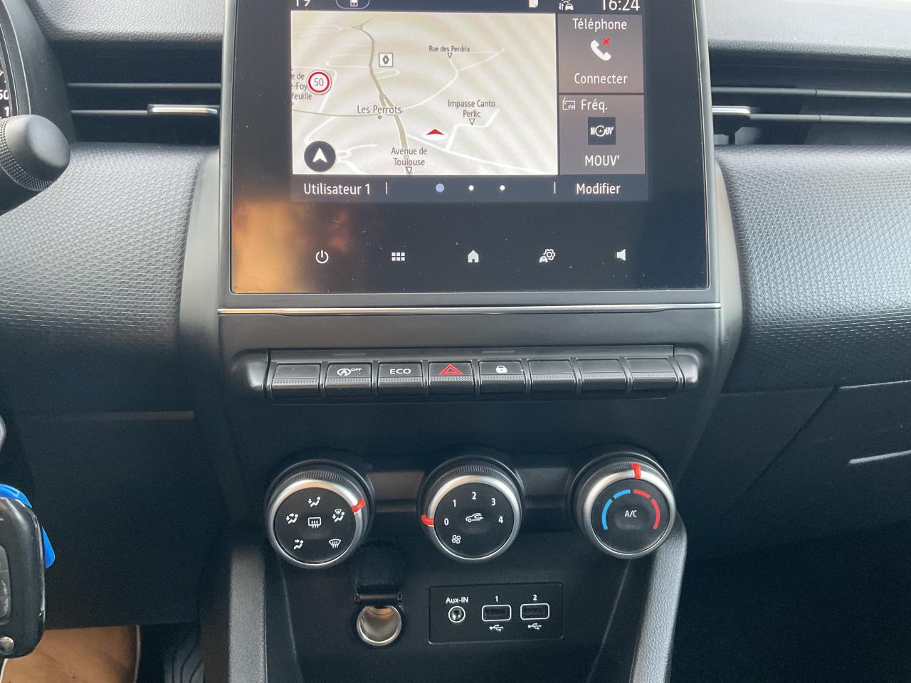 Habitacle moderne avec écran tactile, Bluetooth, aides à la conduite.